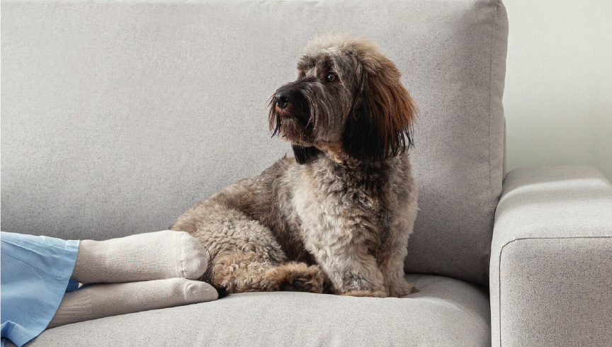 非常に強い糸を使用し、爪などの突起が引っ掛かっても破れにくいAgoraファブリックは、ペットとの暮らしのベストパートナー(※2)。また、糸自体が吸水しにくい特性を持つため、ペットの尿汚れも簡単に拭き取ることができます。